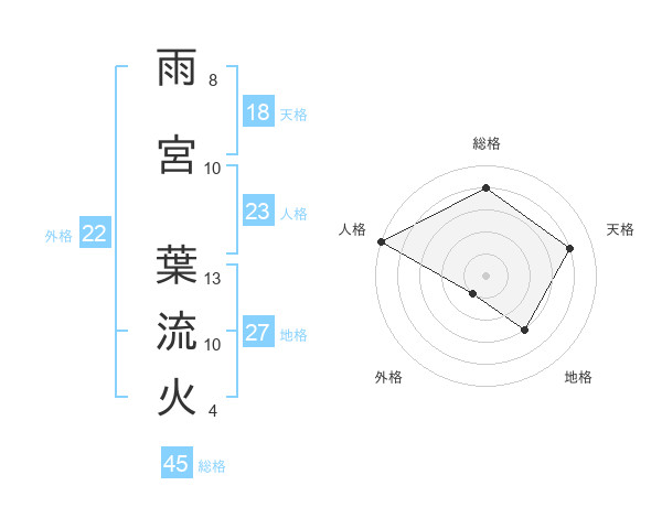 雨宮 葉流火さんを姓名の画数から五運を鑑定