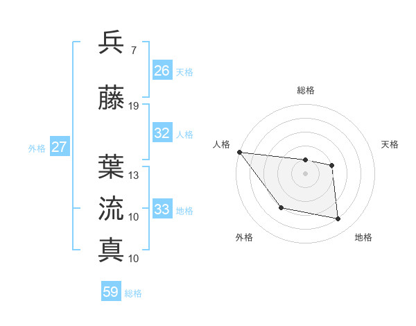 兵藤 葉流真さんを姓名の画数から五運を鑑定