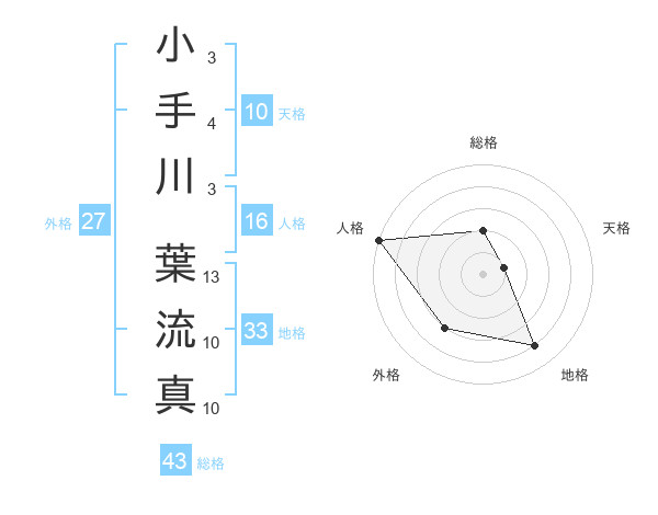 小手川 葉流真さんを姓名の画数から五運を鑑定