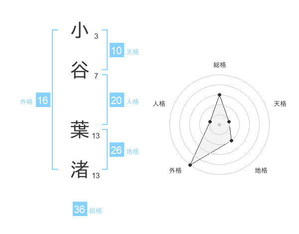 小谷 葉渚さんを姓名の画数から五運を鑑定