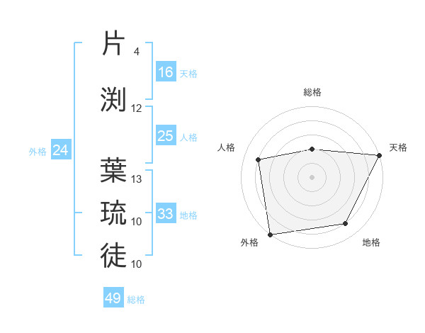 片渕 葉琉徒さんの総格は49画の2点!