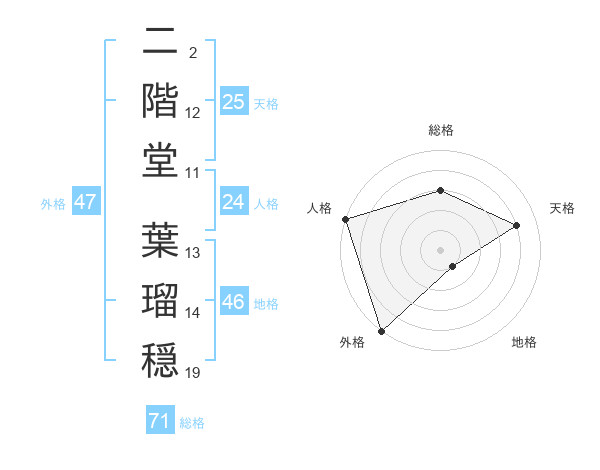 二階堂 葉瑠穏さんの外格は47画の5点!