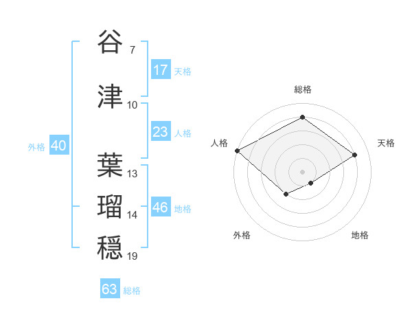 谷津 葉瑠穏さんの天格は17画の4点!