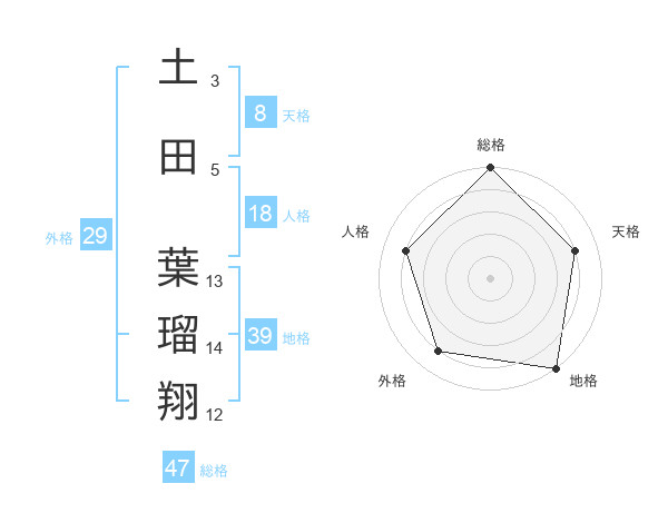 土田 葉瑠翔さんを姓名の画数から五運を鑑定