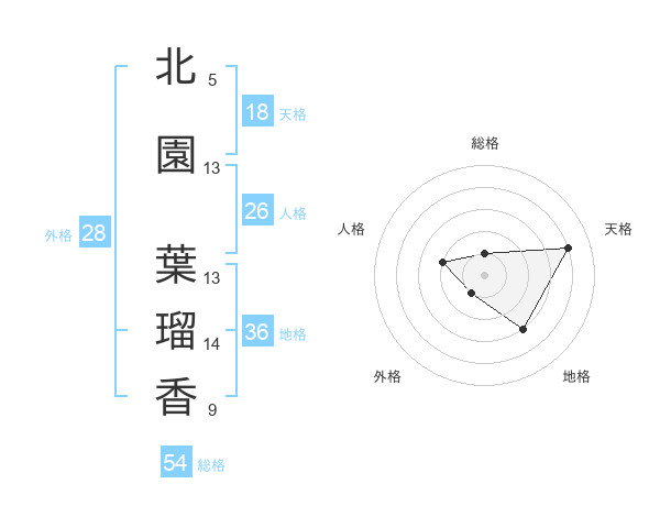 北園 葉瑠香さんを姓名の画数から五運を鑑定