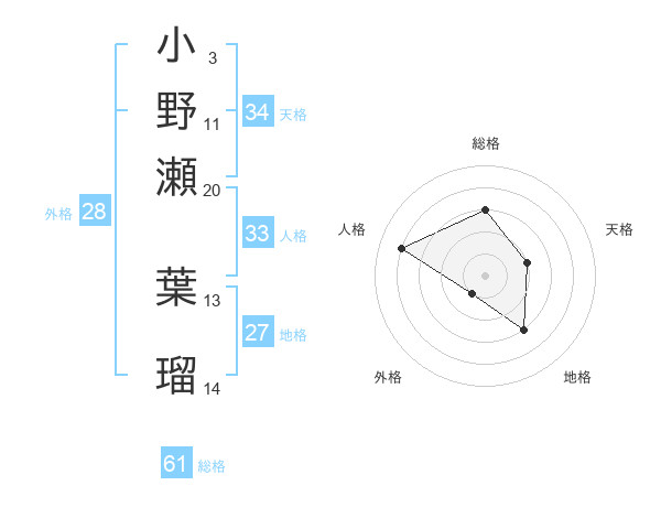 小野瀬 葉瑠さんを姓名の画数から五運を鑑定