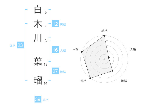 白木川 葉瑠さんの外格は23画の5点!