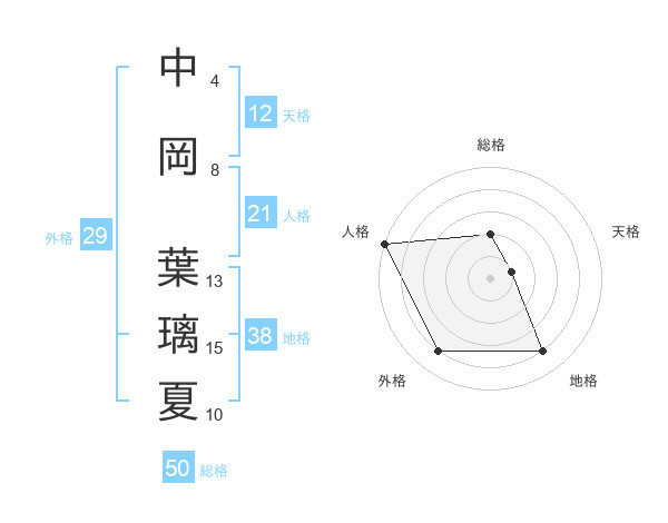 中岡 葉璃夏さんの総格は50画の2点!