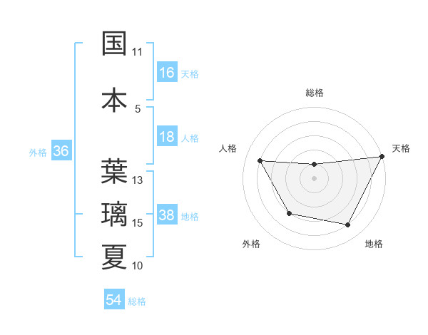 国本 葉璃夏さんを姓名の画数から五運を鑑定