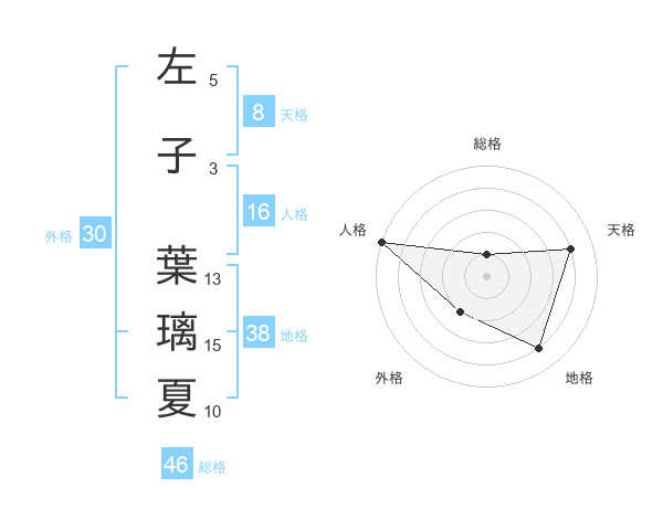左子 葉璃夏さんを姓名の画数から五運を鑑定