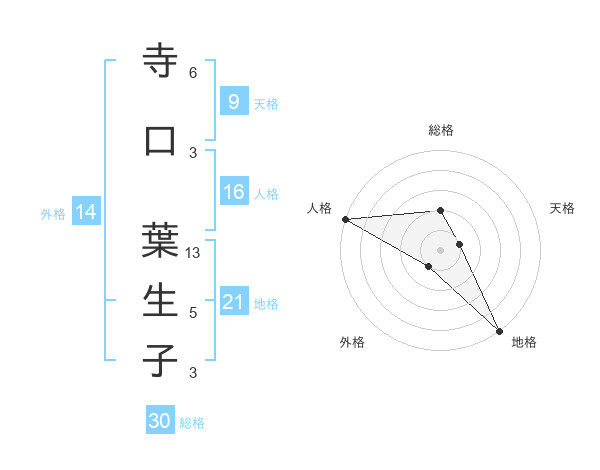 寺口 葉生子さんの地格は21画の5点!