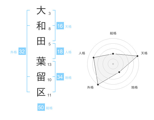 大和田 葉留区さんの総格は50画の2点!