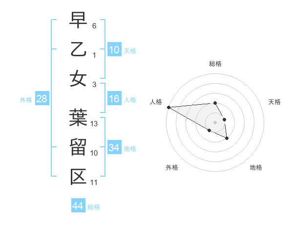 早乙女 葉留区さんの総格は44画の2点!