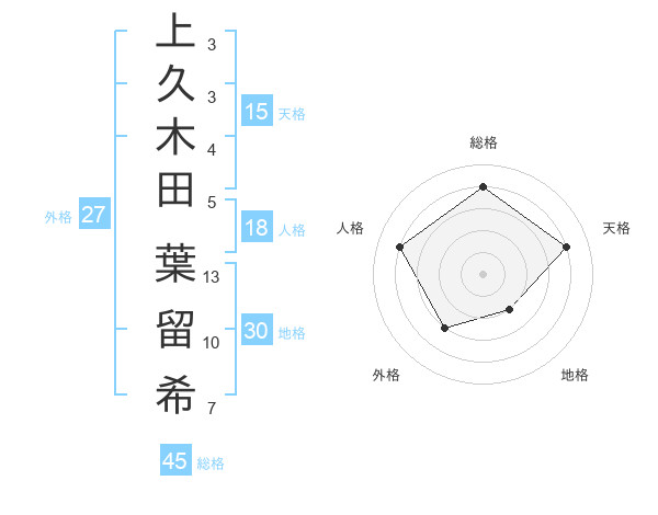 上久木田 葉留希さんを姓名の画数から五運を鑑定