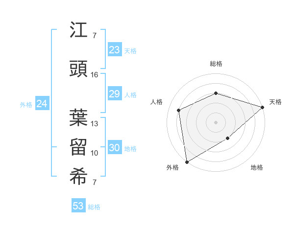 江頭 葉留希さんを姓名の画数から五運を鑑定