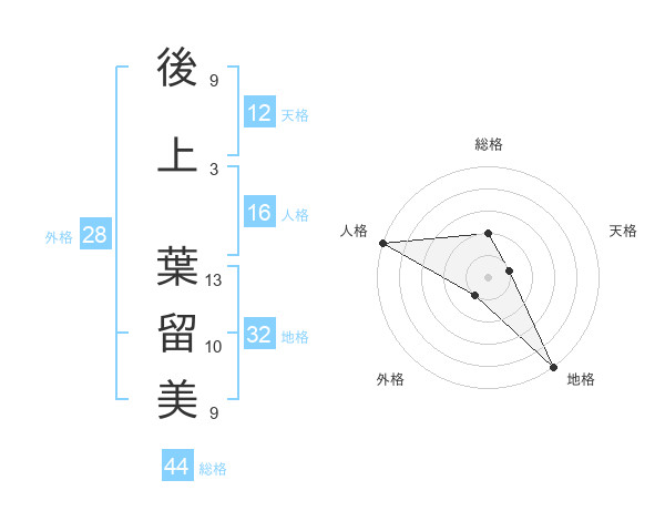 後上 葉留美さんを姓名の画数から五運を鑑定
