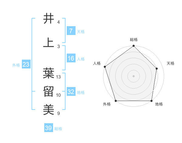 井上 葉留美さんを姓名の画数から五運を鑑定
