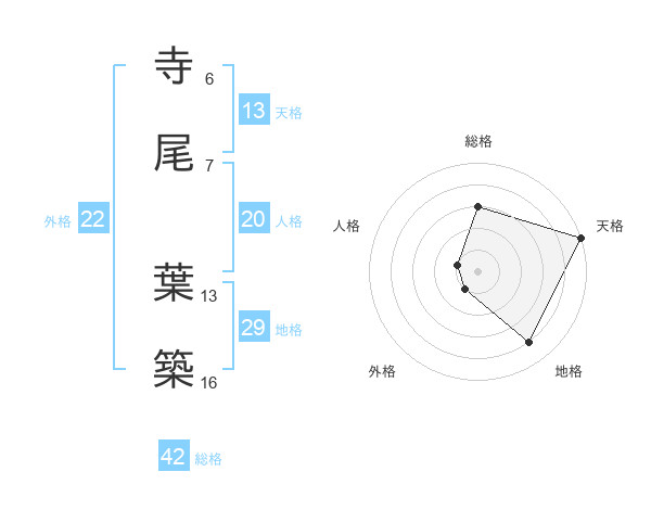 寺尾 葉築さんの天格は13画の5点!