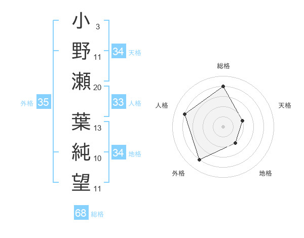 小野瀬 葉純望さんを姓名の画数から五運を鑑定
