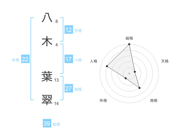 八木 葉翠さんの総格は39画の5点!