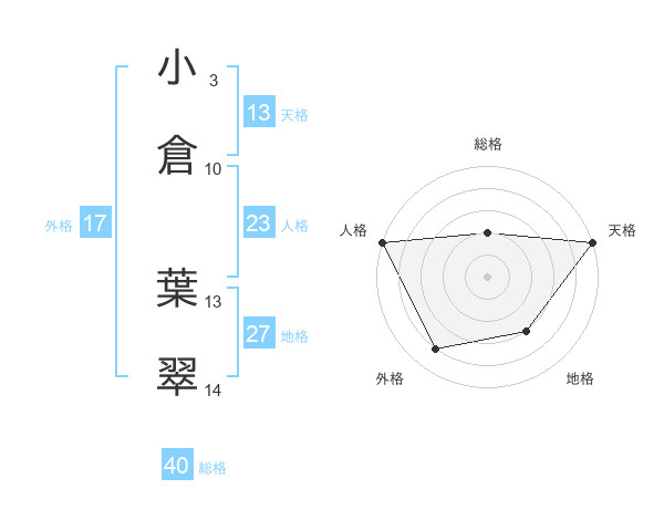 小倉 葉翠さんの天格は13画の5点!