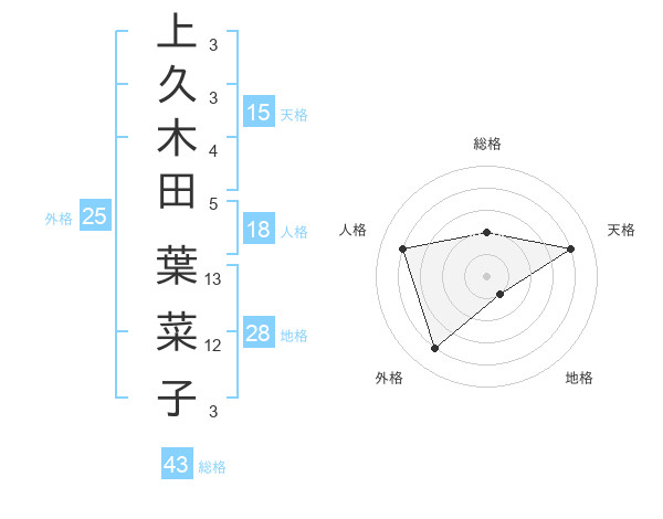 上久木田 葉菜子さんの天格は15画の4点!