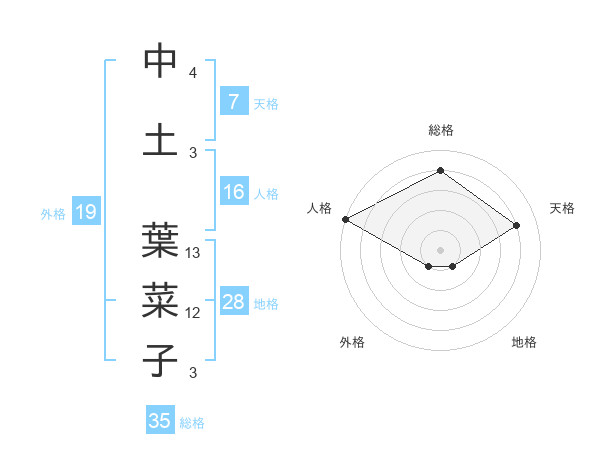 中土 葉菜子さんを姓名の画数から五運を鑑定