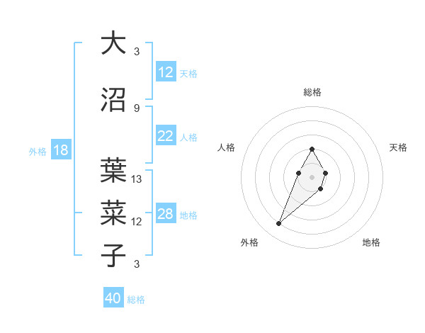 大沼 葉菜子さんの総格は40画の2点!