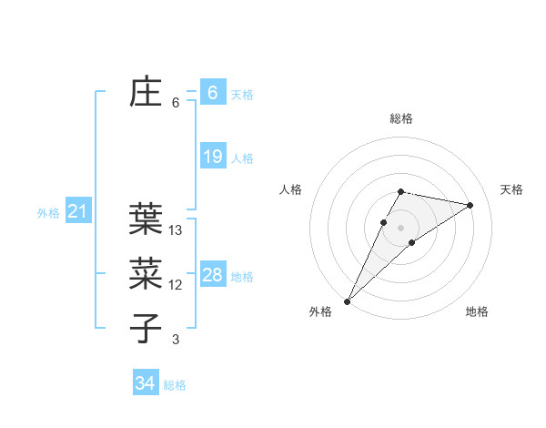 庄 葉菜子さんの外格は21画の5点!