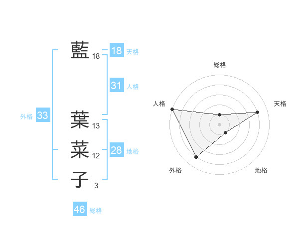 藍 葉菜子さんの天格は18画の4点!