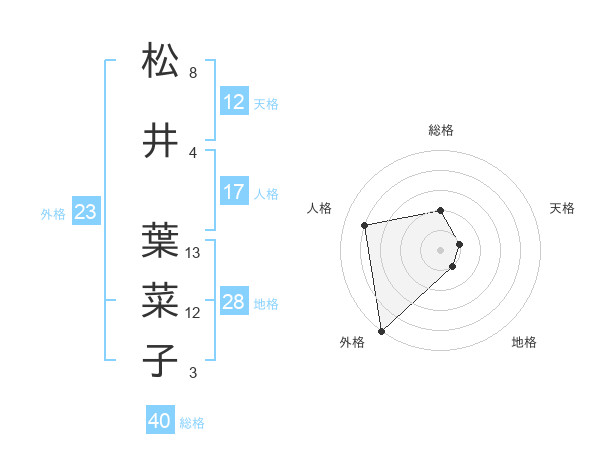 松井 葉菜子さんの外格は23画の5点