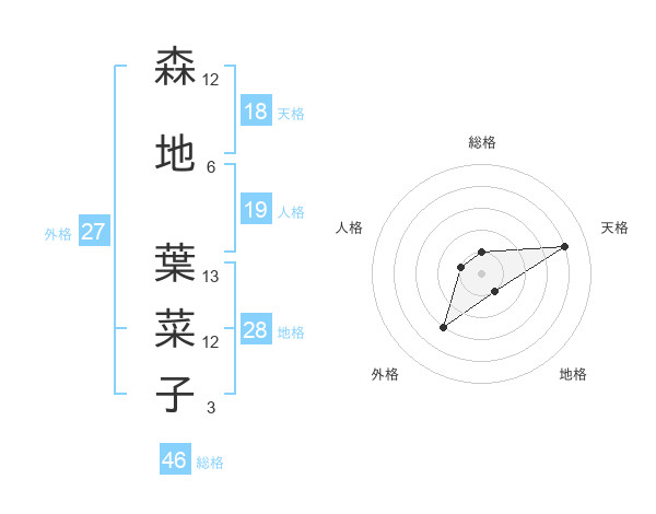 森地 葉菜子さんの総格は46画の1点!