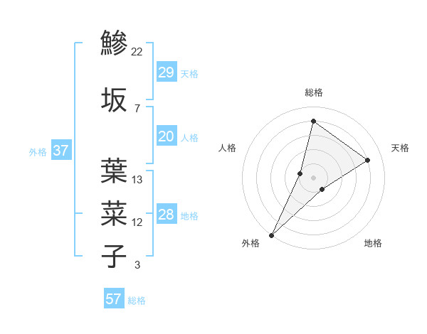 鰺坂 葉菜子さんを姓名の画数から五運を鑑定