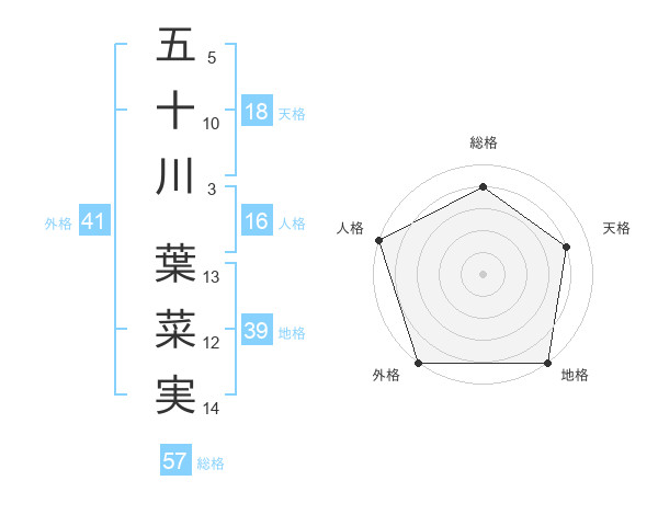 五十川 葉菜実さんを姓名の画数から五運を鑑定
