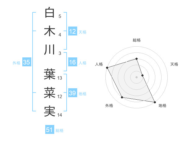 白木川 葉菜実さんを姓名の画数から五運を鑑定