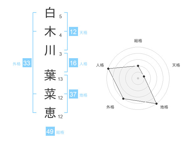 白木川 葉菜恵さんの地格は37画の5点!