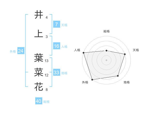 井上 葉菜花さんを姓名の画数から五運を鑑定