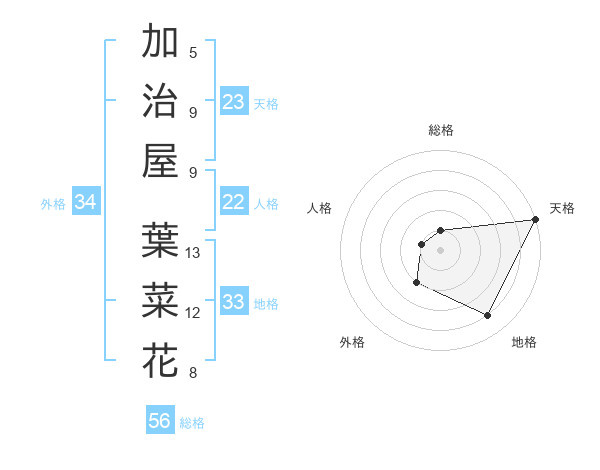 加治屋 葉菜花さんを姓名の画数から五運を鑑定