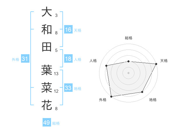 大和田 葉菜花さんを姓名の画数から五運を鑑定