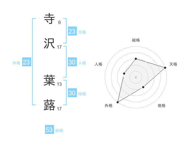 寺沢 葉蕗さんの天格は23画の5点!