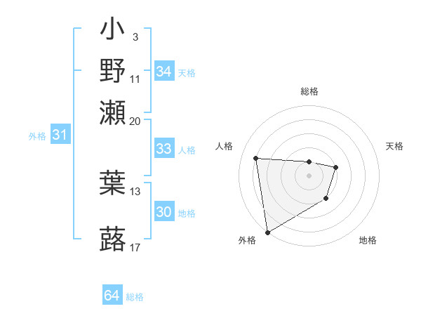 小野瀬 葉蕗さんを姓名の画数から五運を鑑定