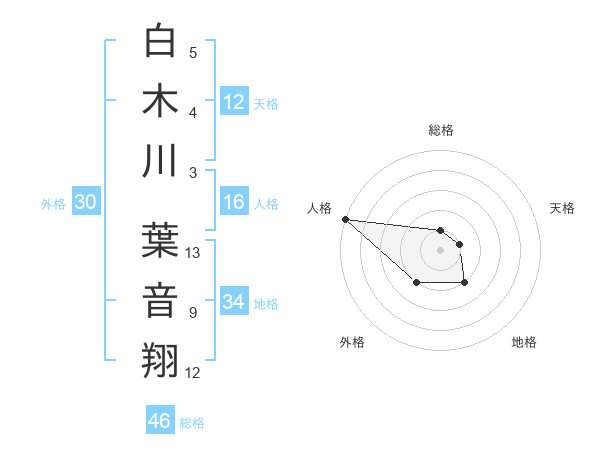 白木川 葉音翔さんを姓名の画数から五運を鑑定