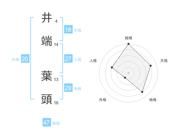 井端 葉頭さんの総格は47画の5点!