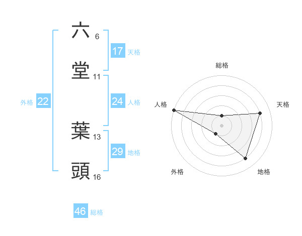六堂 葉頭さんの総格は46画の1点!