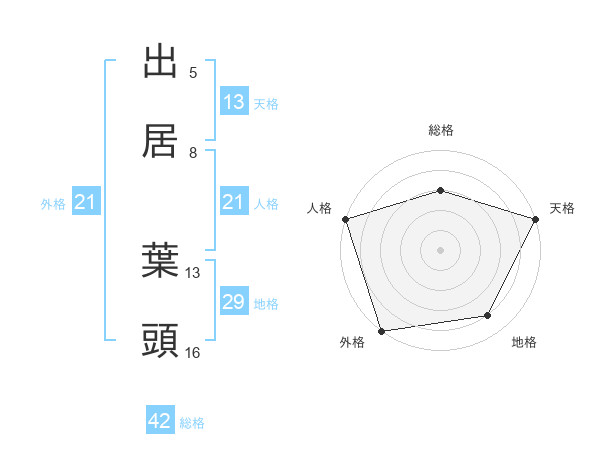 出居 葉頭さんを姓名の画数から五運を鑑定