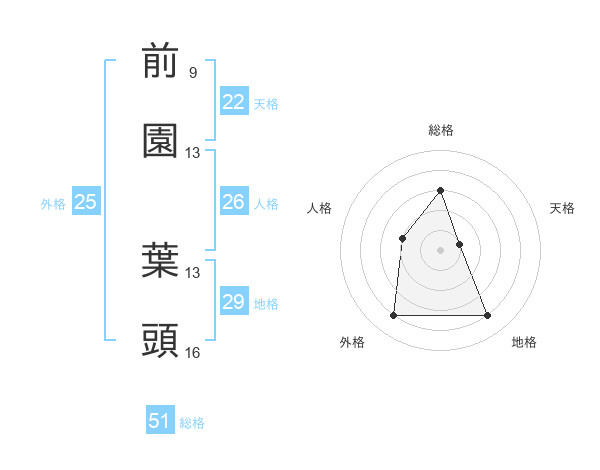 前園 葉頭さんの総格は51画の3点!