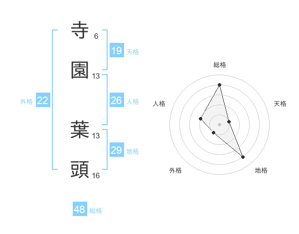 寺園 葉頭さんを姓名の画数から五運を鑑定