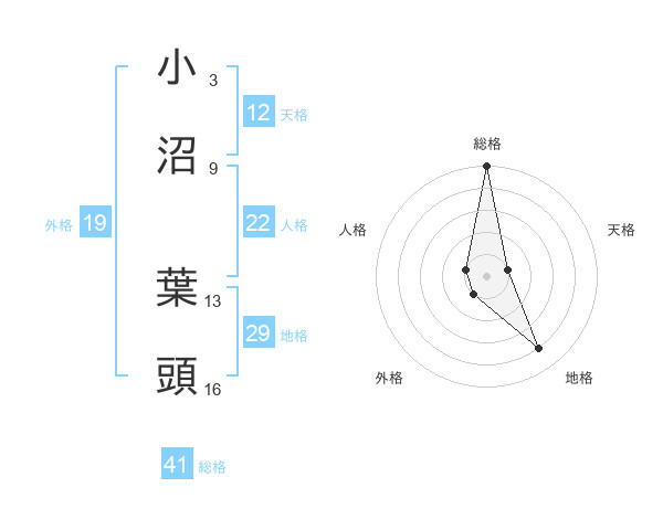 小沼 葉頭さんを姓名の画数から五運を鑑定