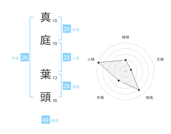 真庭 葉頭さんの総格は49画の2点!