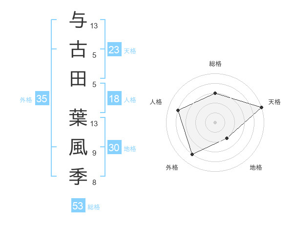 与古田 葉風季さんを姓名の画数から五運を鑑定